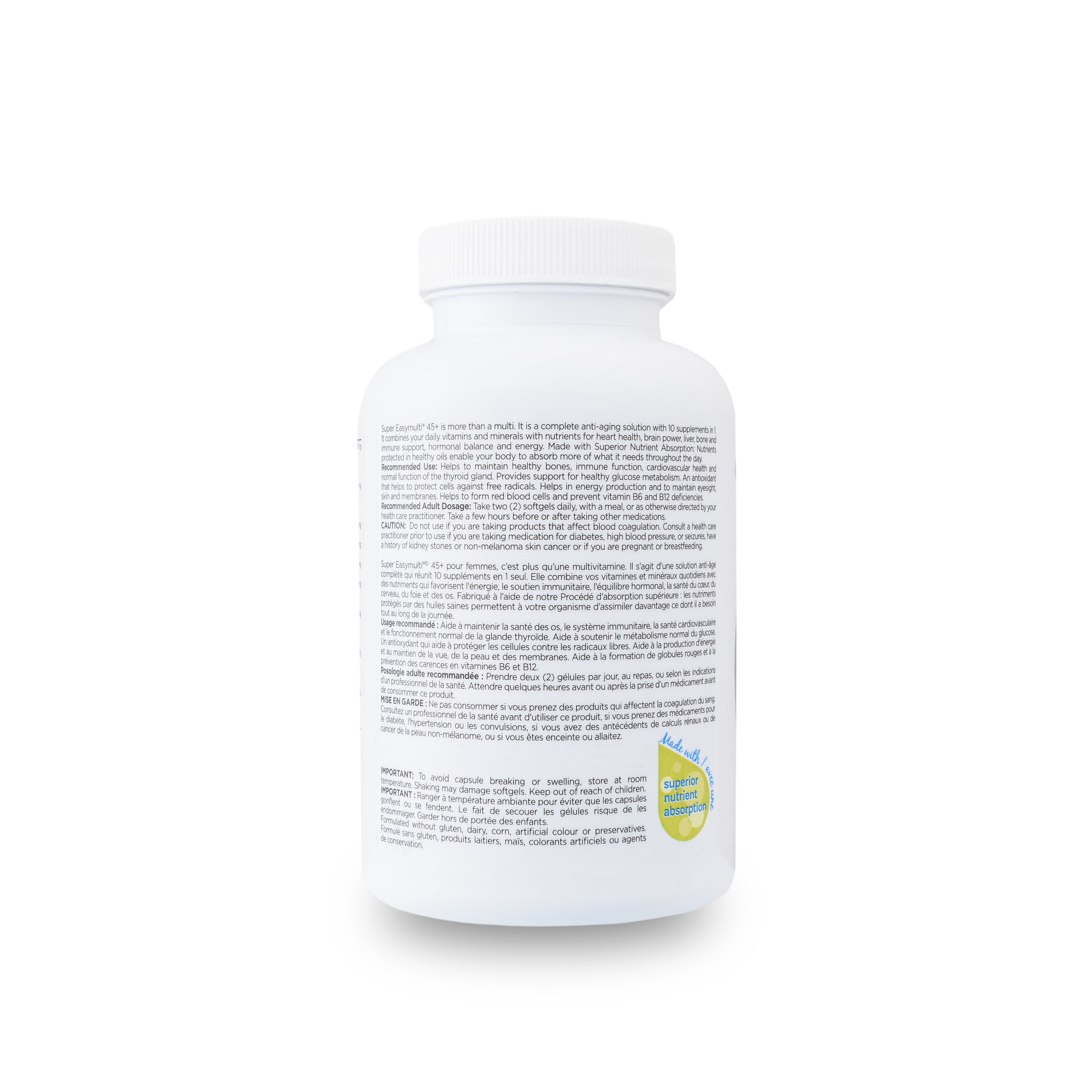 Benefits: Age is just a number. Good nutrition plays an important role in feeling your best every day, as your ability to absorb nutrients may decrease over time. Super Easymulti 45+ is a complete 10 in 1 anti-aging solution formulated to help fight the effects of aging.