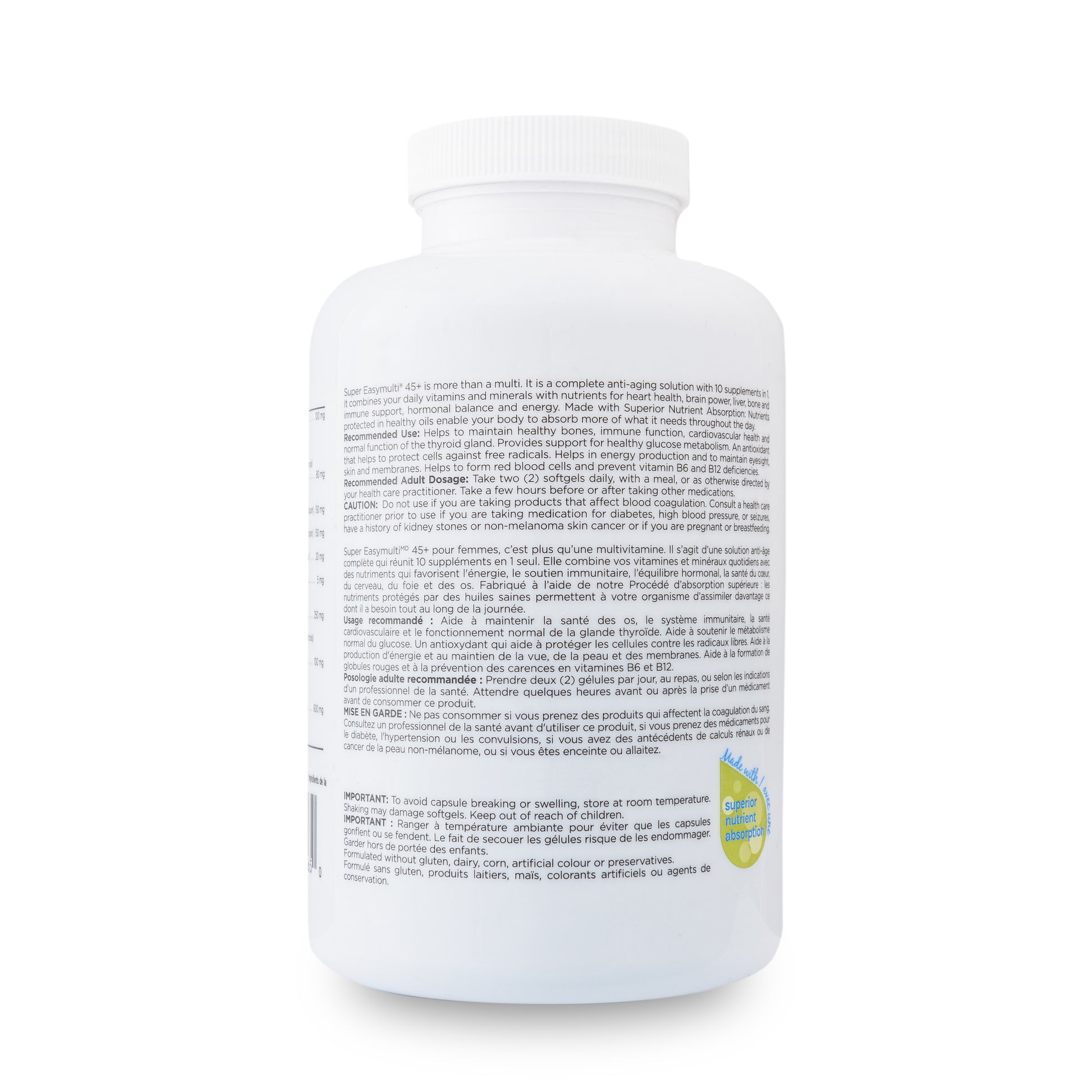 Benefits: Age is just a number. Good nutrition plays an important role in feeling your best every day, as your ability to absorb nutrients may decrease over time. Super Easymulti 45+ is a complete 10 in 1 anti-aging solution formulated to help fight the effects of aging.